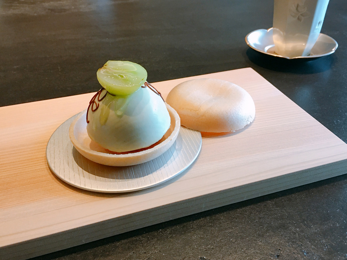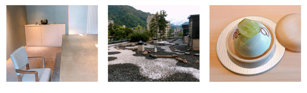 なんと・・ウェルカムスイーツは館内に併設されているショップ「坂ノ上の最中」の季節のもなか(シャインマスカット)でした!ボリューム大・・・