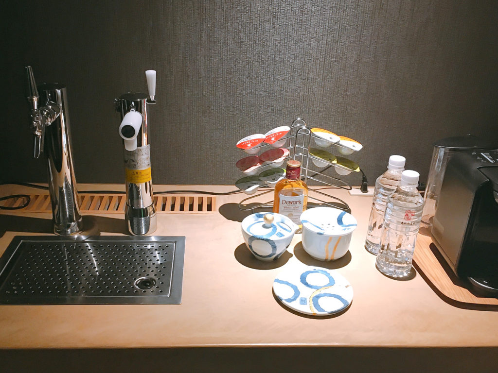 部屋に・・ビールサーバーと・・・炭酸サーバーが!!デュワーズのミニボトルもあり・・ハイボール&生ビールが飲み放題…!びっくりしました・・