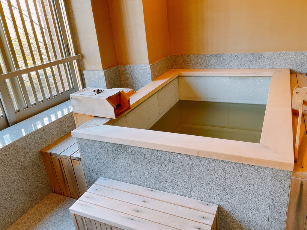 開閉式の温泉付きの部屋でした!