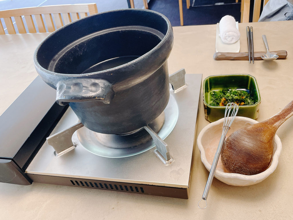 こちらはまずお出し!塩で少し頂いて自分でみそを溶かします!