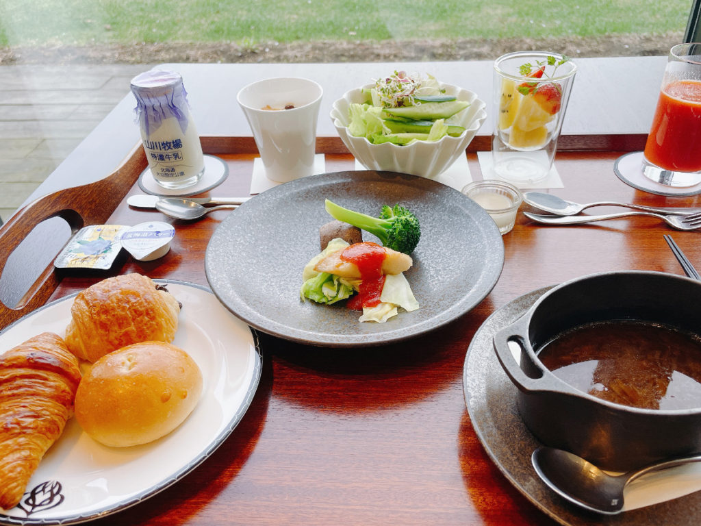 久々の洋食な朝ごはん!野菜もパンも美味しい!