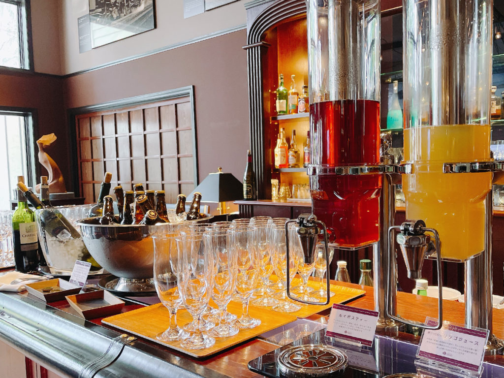 ラウンジカウンターにはセルフでワイン、瓶ビール、ソフトドリンクがありました!