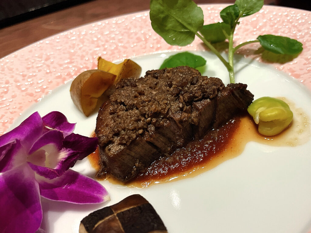 (主菜)A5十勝和牛フィレ (よく焼きでお願いしたので黒いです。。)