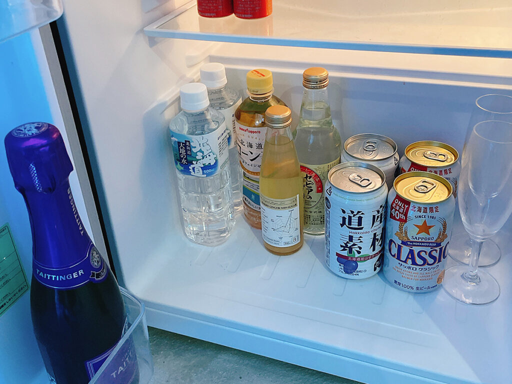 こちらは下の階の冷蔵庫、全てフリーです(持ち帰りの袋も用意されてました!)