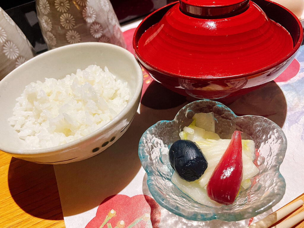 豚汁、ご飯は白米と白老牛の炊き込みご飯